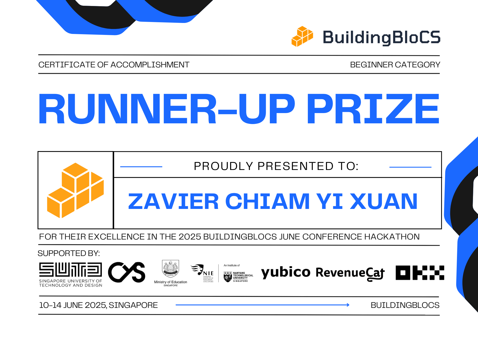 1st Runner-Up for BuildingBlocs June Conference 2025, an AI-based hackathon.