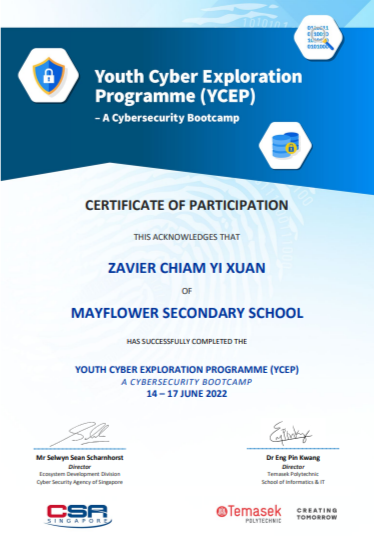 Participated in Temasek Poly and CSA Singapore's Youth Cyber Exploration Programme